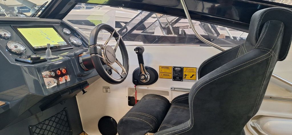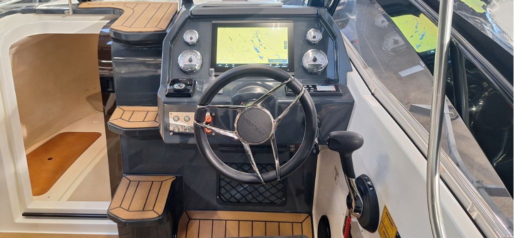 Garmin GPS sikrer præcis navigation, og med Fusion-radio, køleboks og komfortabel siddegruppe er alt på plads til hyggelige timer på vandet. En alsidig cruiser, der forener fart, funktion og stil.