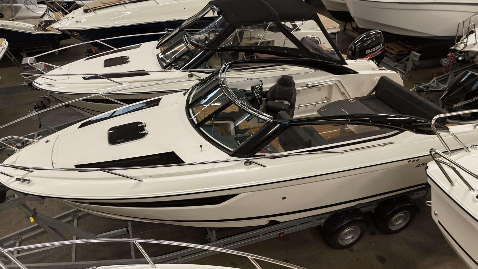 Monteret med en kraftfuld og økonomisk Mercury 300 hk, der giver masser af overskud og støjsvag sejlads.