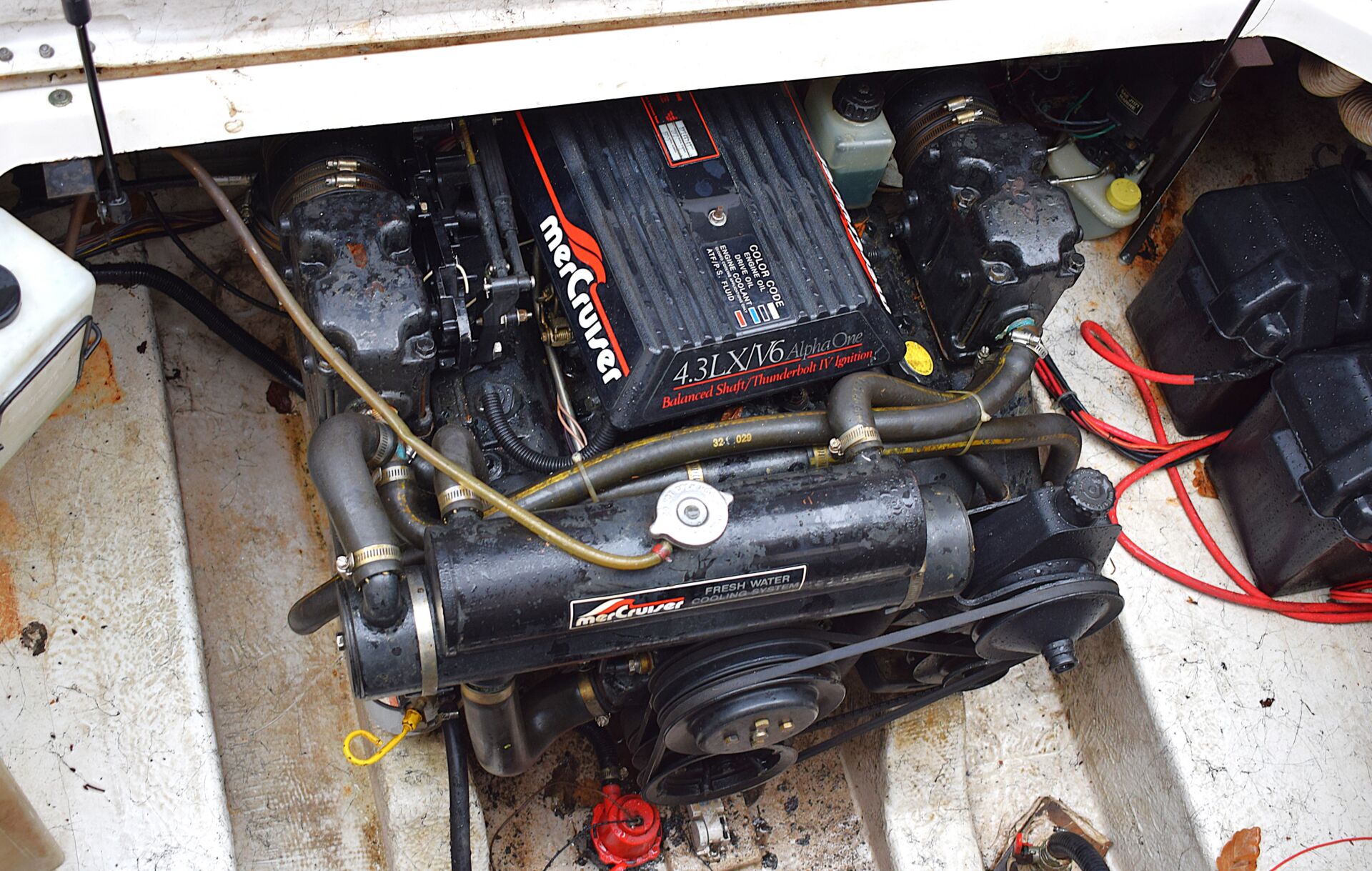 Motoren er en velkørende MerCruiser 4.3 LX V6, som er kendt for sin driftssikkerhed og fornuftige økonomi. Den er ferskvandskølet, hvilket betyder mindre vedligehold sammenlignet med traditionelle saltvandskølede motorer og generelt en mere skånsom drift.