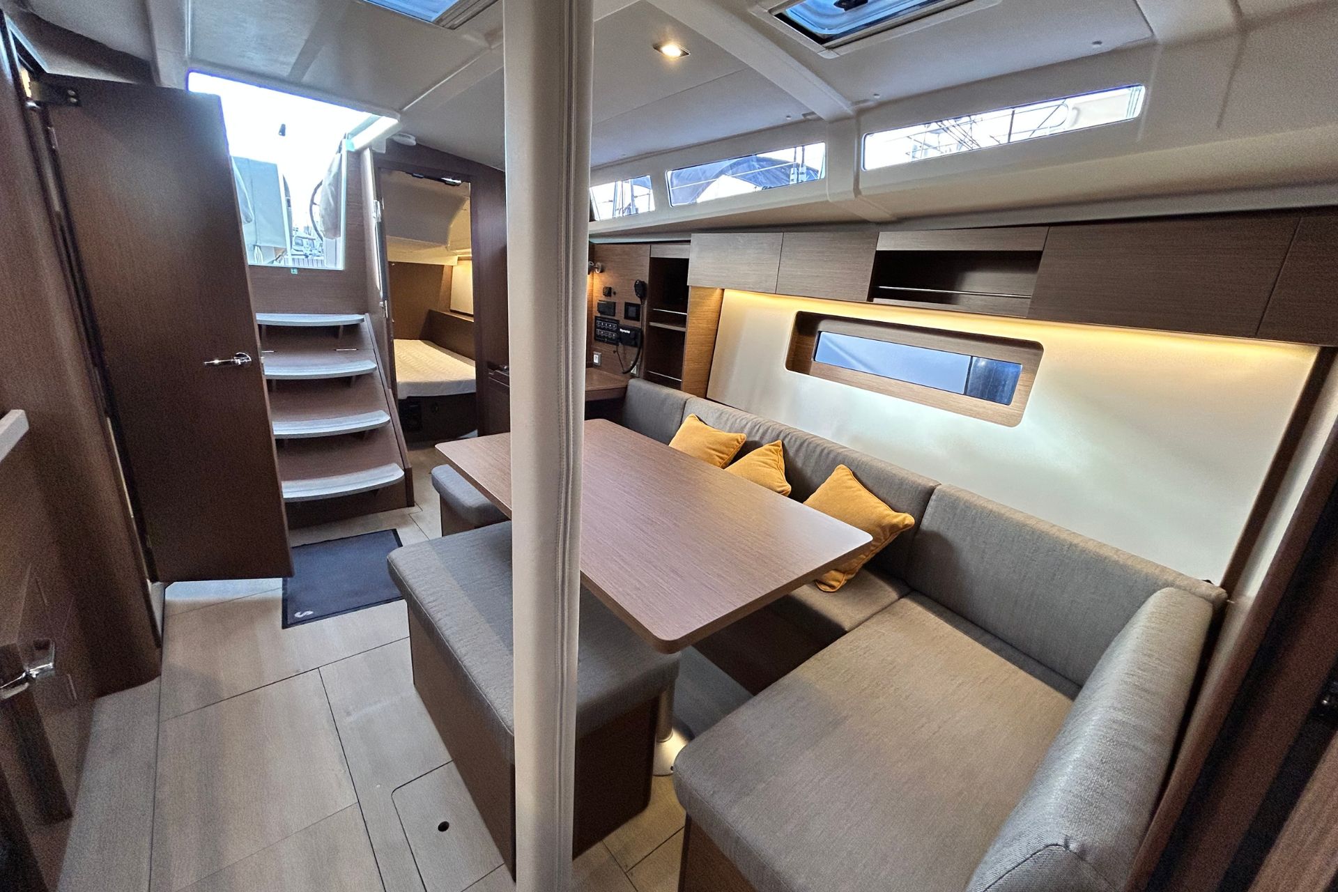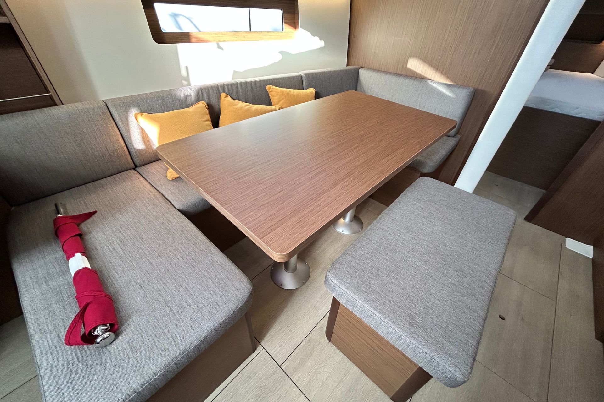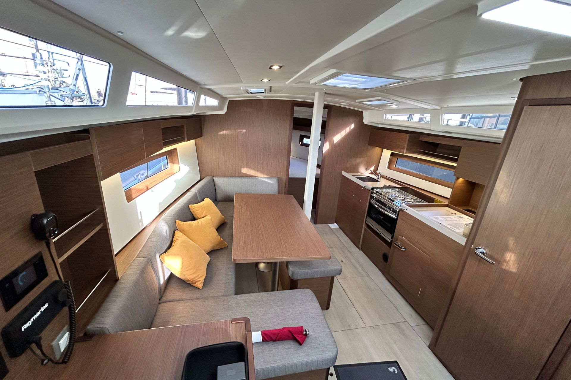 Komforten er gennemtænkt: integreret badeplatform, ergonomisk placerede instrumenter og et rummeligt interiør med naturligt lys. Salonen har plads til seks personer, og båden kan indrettes med én eller to agterkahytter. Båden kan også leveres med elmotor for en mere miljøvenlig sejlads. Dækket er udført i bæredygtigt Iroko, som er et slidstærkt alternativ til teak.