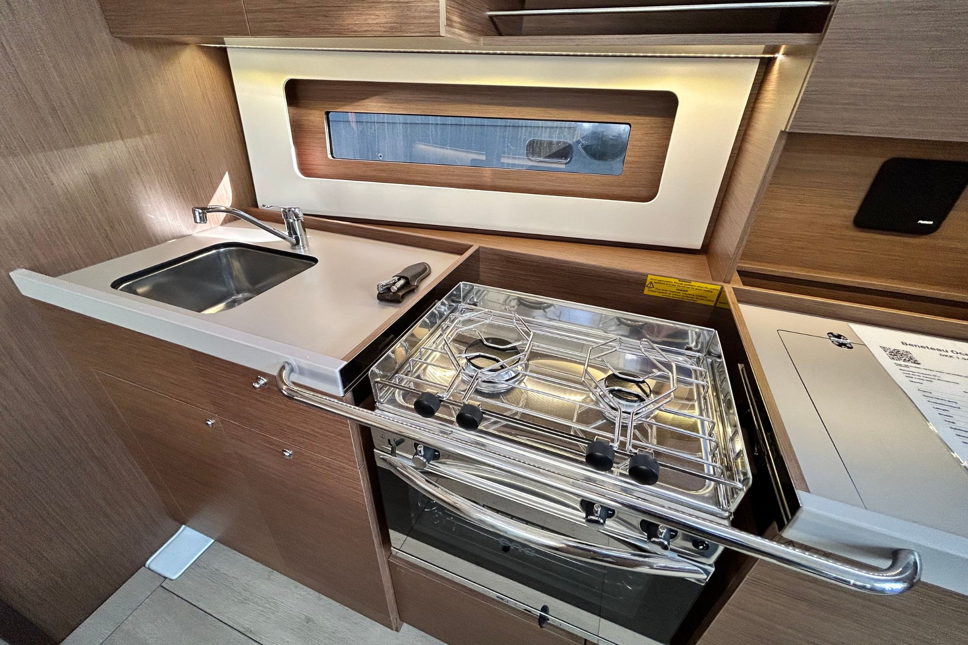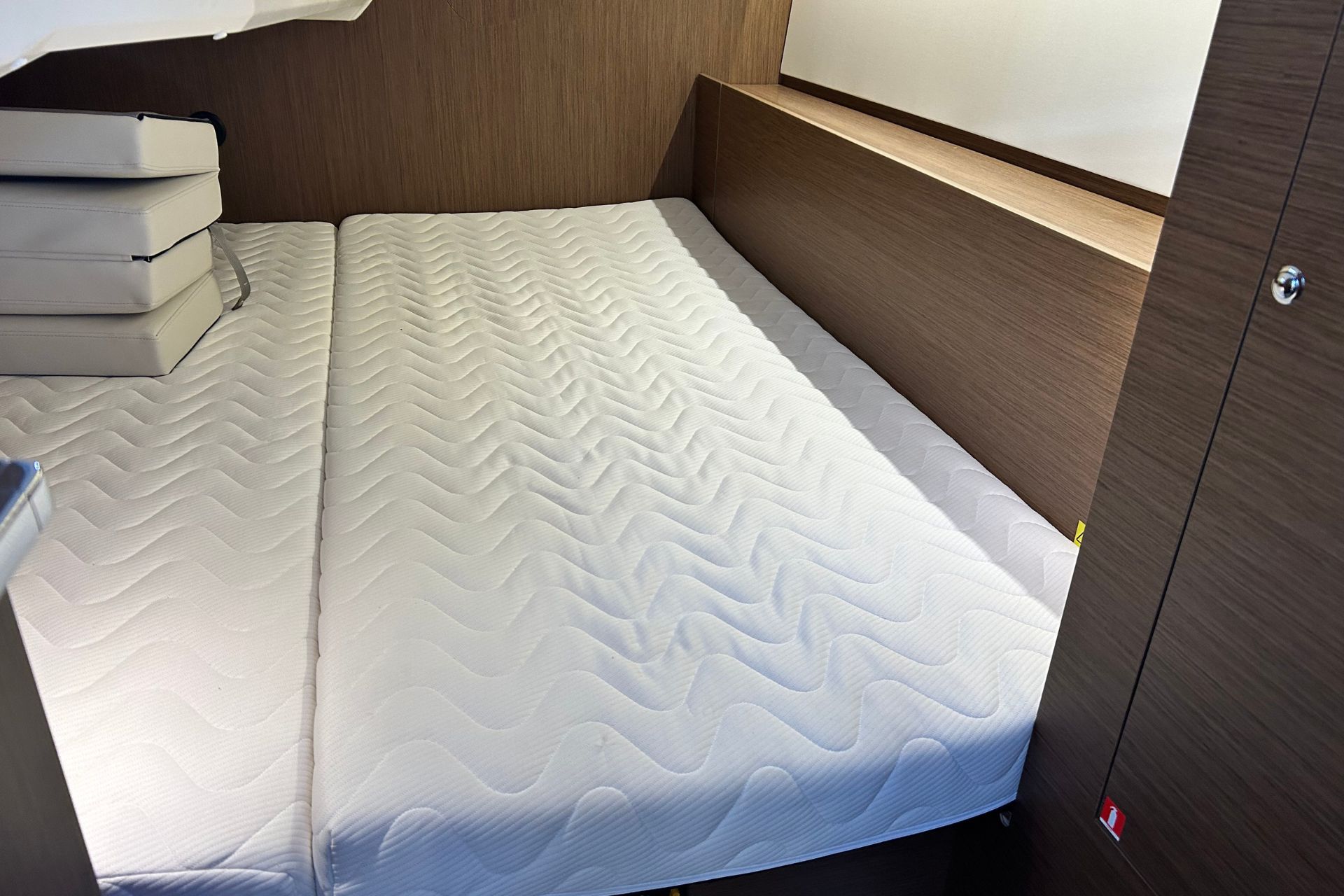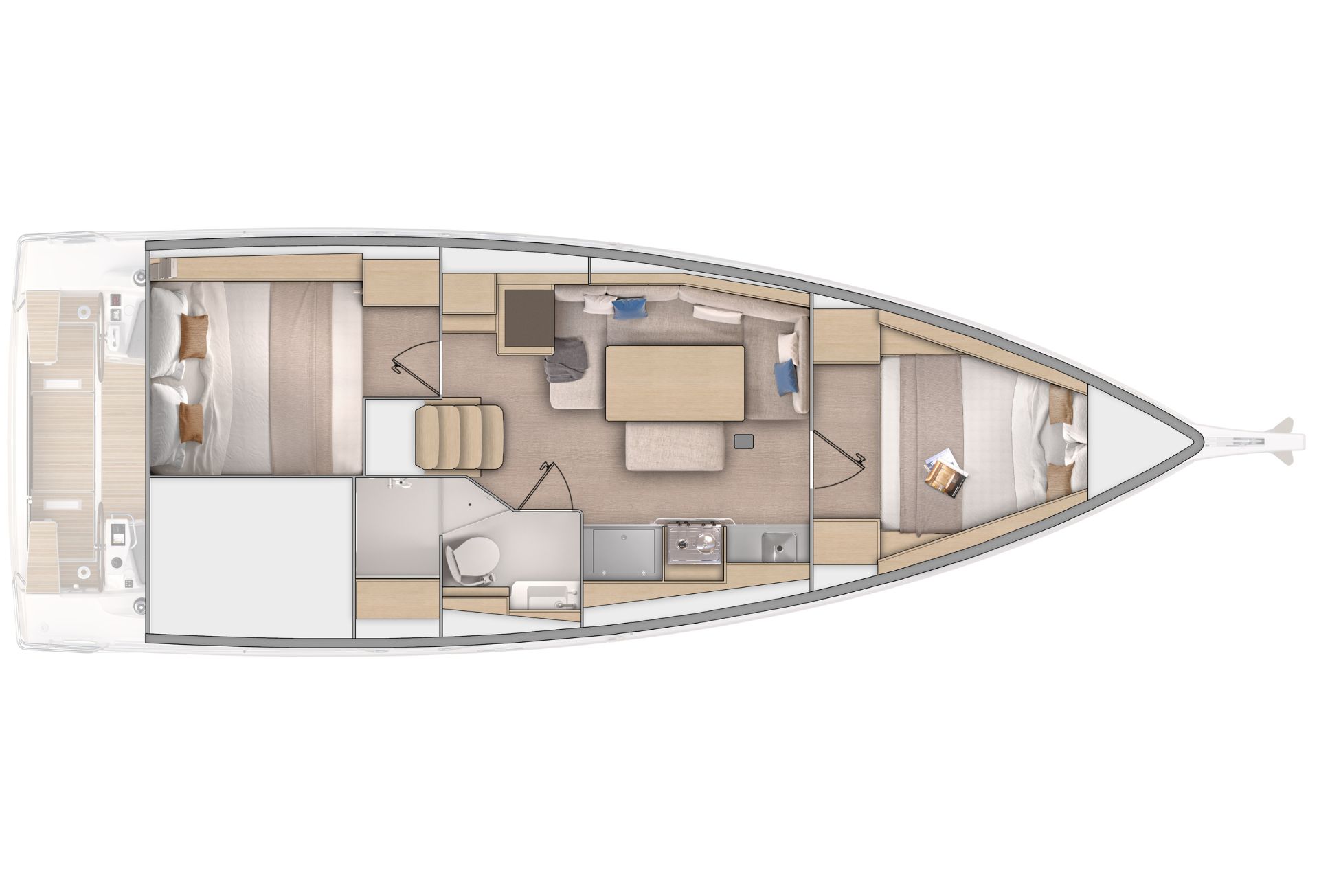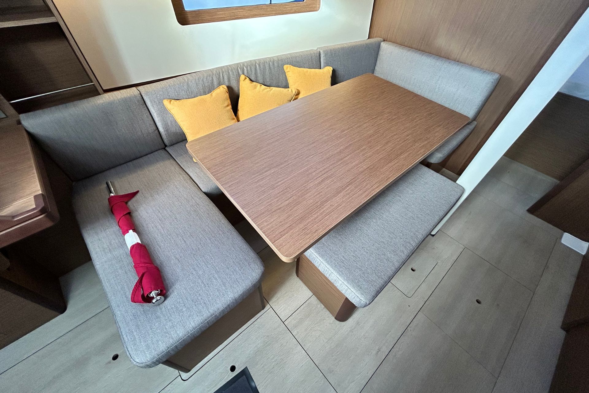 Komforten er gennemtænkt: integreret badeplatform, ergonomisk placerede instrumenter og et rummeligt interiør med naturligt lys. Salonen har plads til seks personer, og båden kan indrettes med én eller to agterkahytter. Båden kan også leveres med elmotor for en mere miljøvenlig sejlads. Dækket er udført i bæredygtigt Iroko, som er et slidstærkt alternativ til teak.