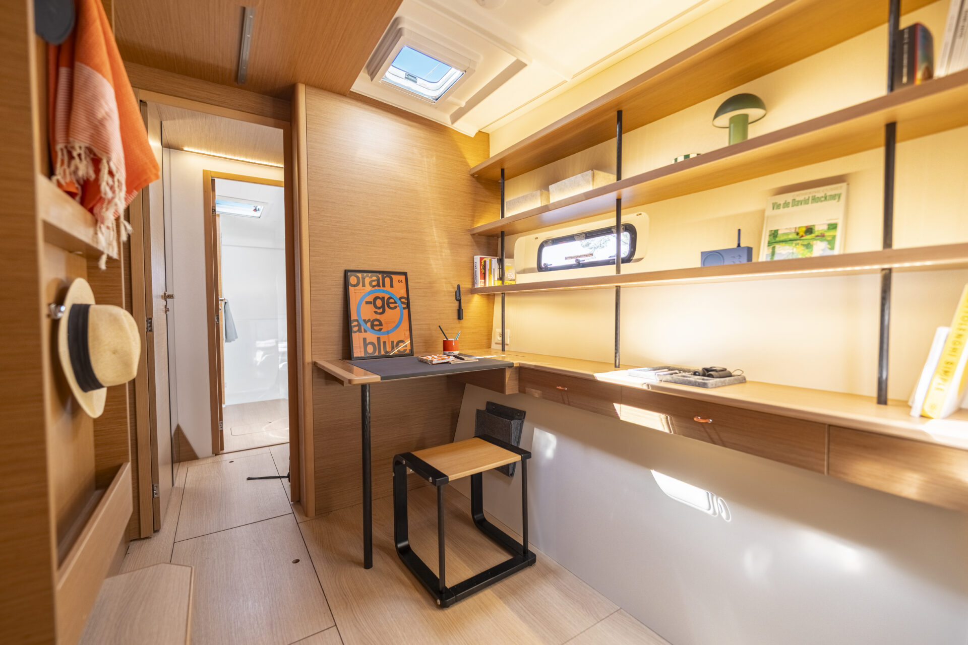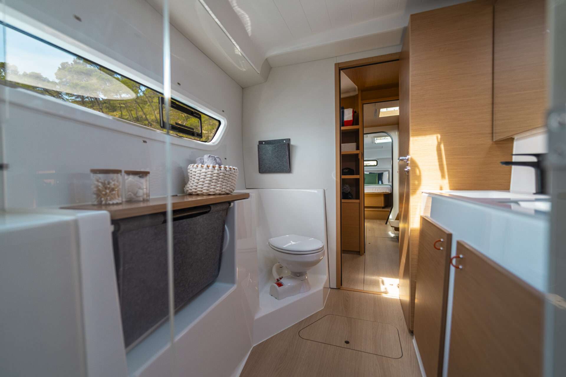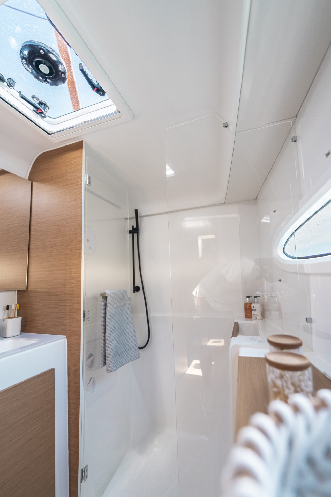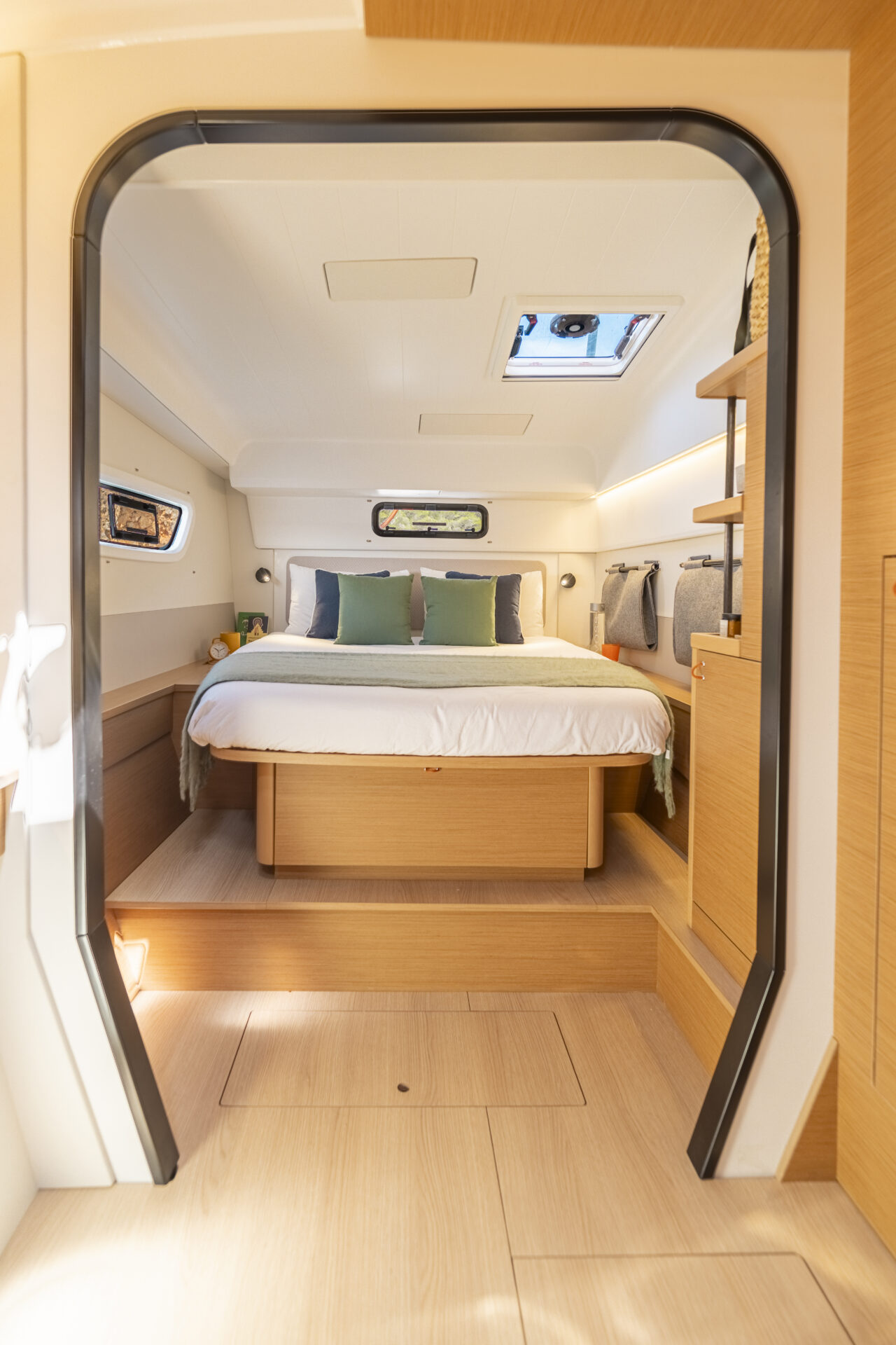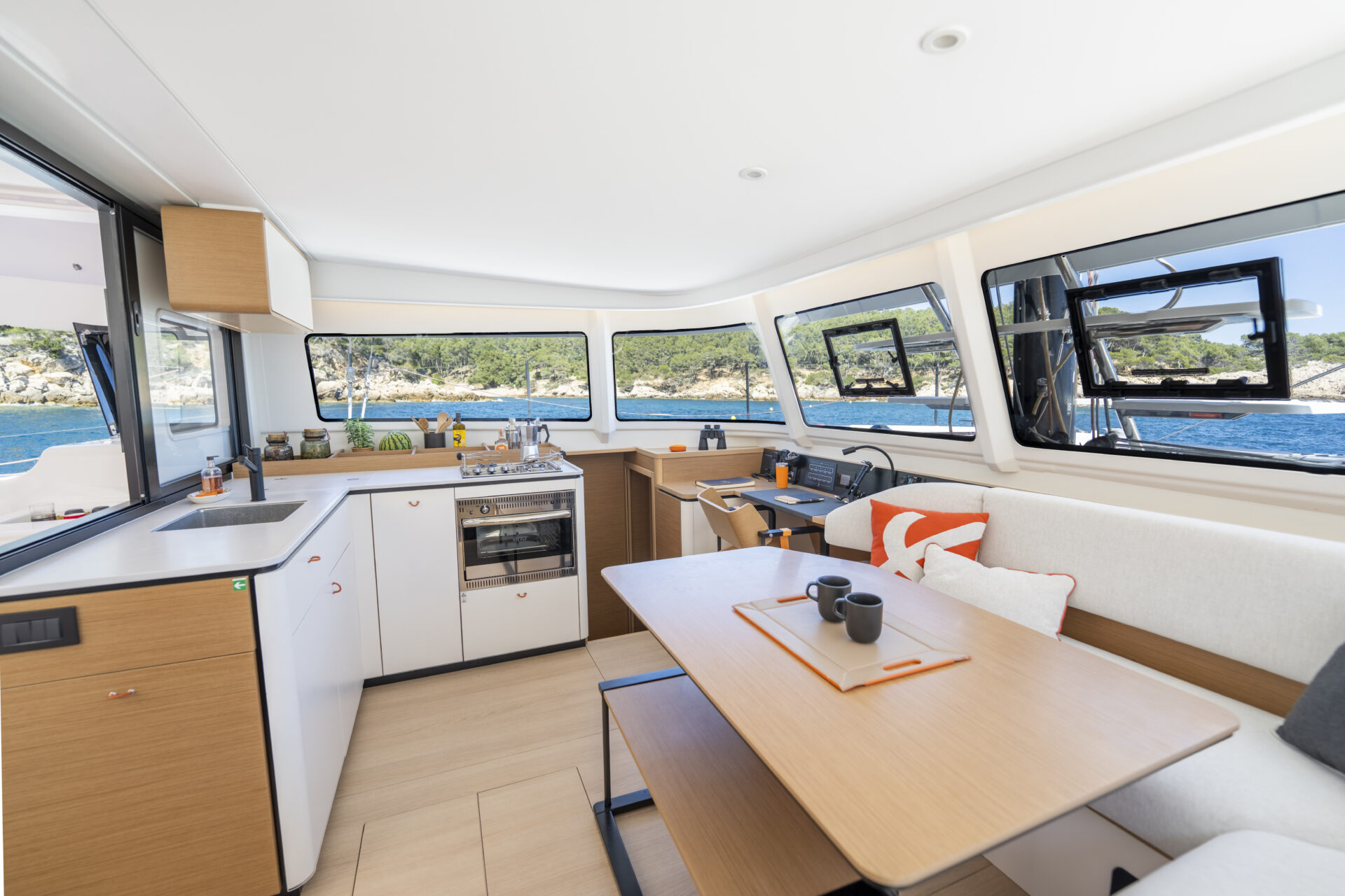 Katamaranen kombinerer et lavere deplacement, optimeret sejlføring og direkte ratstyring med et stilrent, åbent cockpit og en lys, rummelig salon. Resultatet er en katamaran, der både er sjov at sejle og behagelig at leve ombord på – uanset om turen går langs kysten eller over åbent hav.