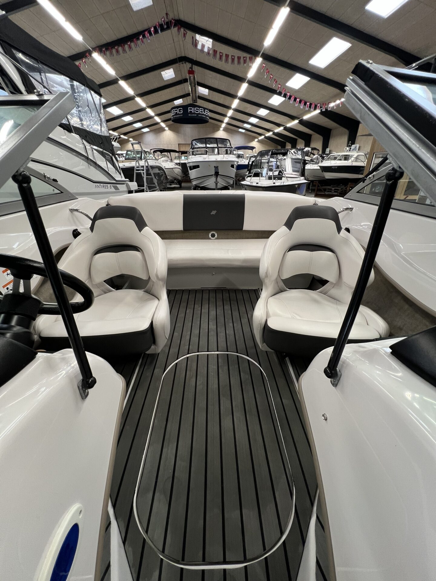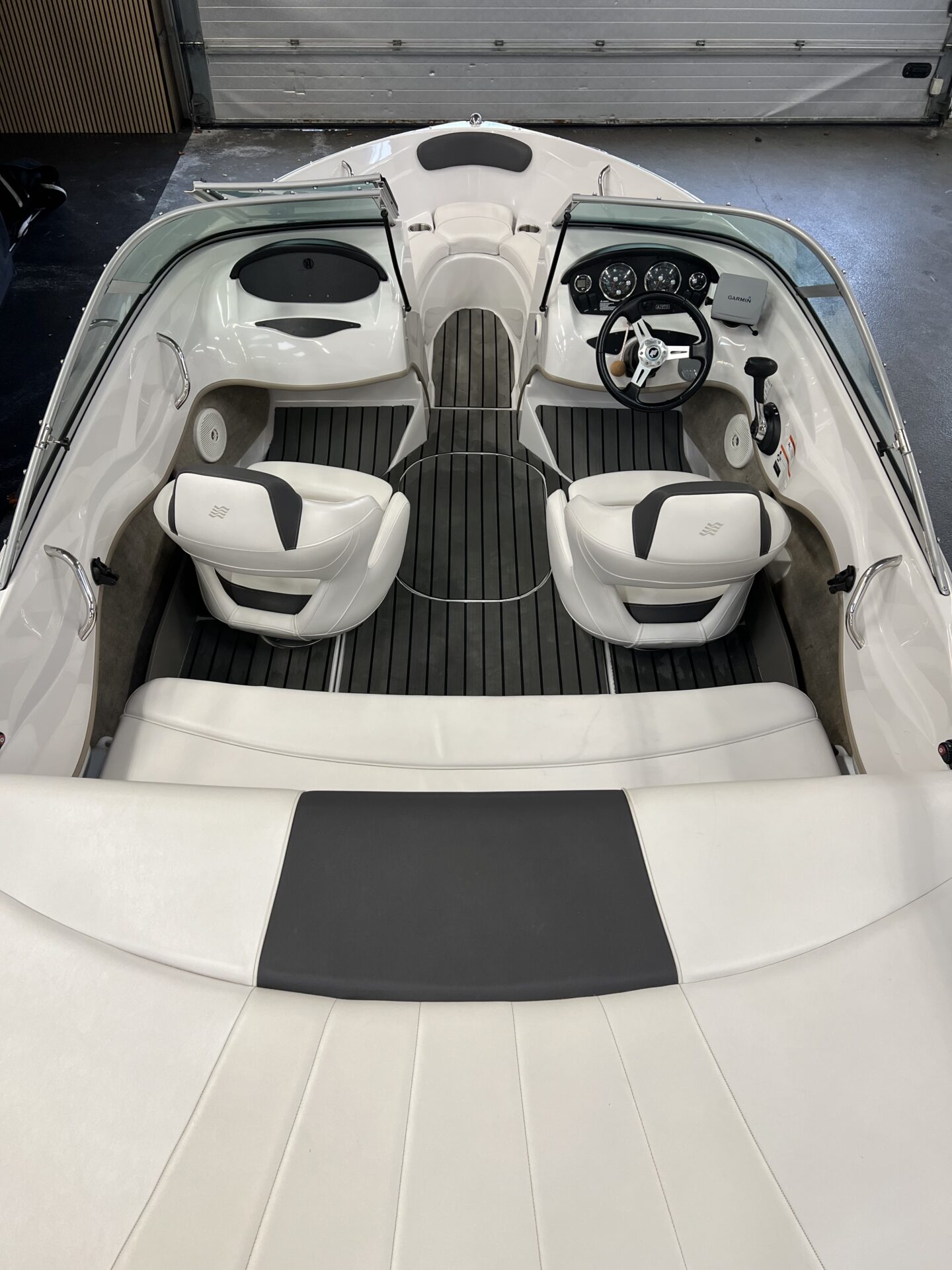 Indretningen er social og indbydende med åbent cockpit, komfortable siddepladser og god plads i stævnen. Det er båden, hvor vennerne naturligt samles, hvor børnene kan sidde trygt, og hvor dagen hurtigt kan fyldes med badeture, vandsjov og afslapning i solen. Størrelsen gør den overskuelig – men oplevelsen er stor.