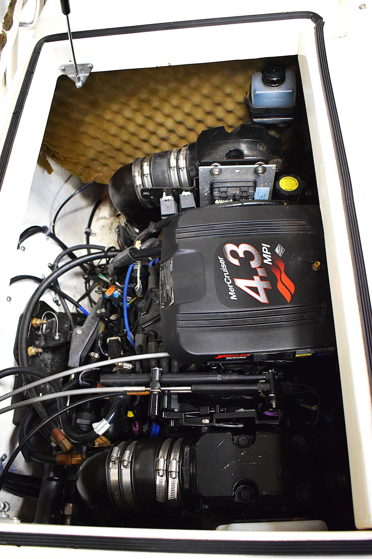 Båden er udstyret med en MerCruiser 4.3L MPI benzinmotor på 220 hk med kun 337 timer, hvilket giver en stærk og driftssikker fremdrift. Motoren leverer et behageligt overskud i sejladsen, uanset om turen går langs kysten eller ud på åbent vand. Kombinationen af kraft, balance og solid konstruktion gør sejladsen tryg og komfortabel.