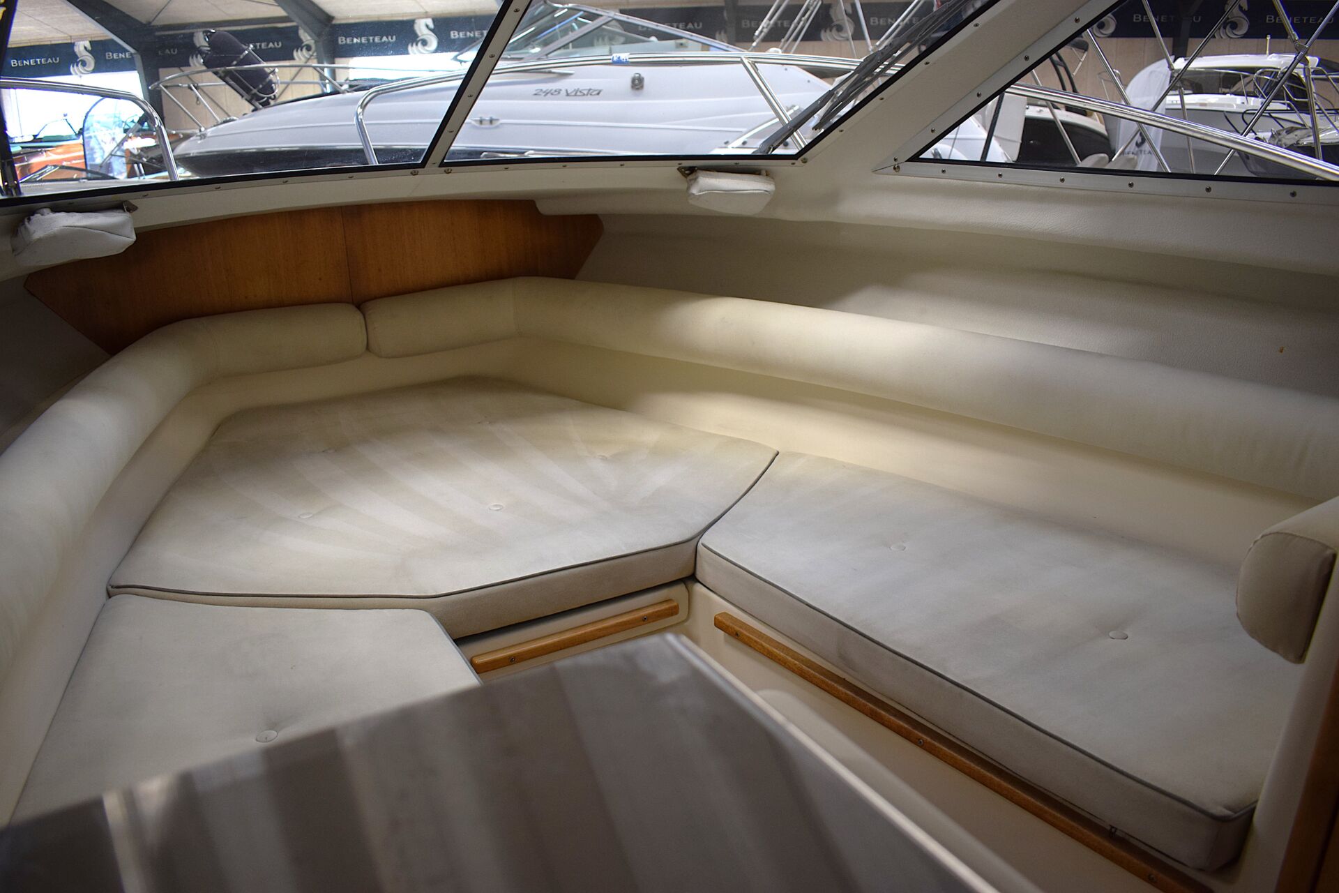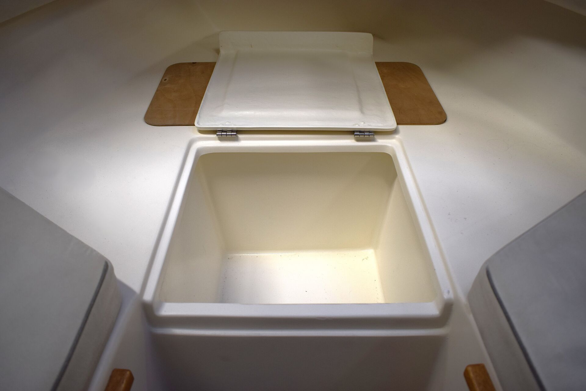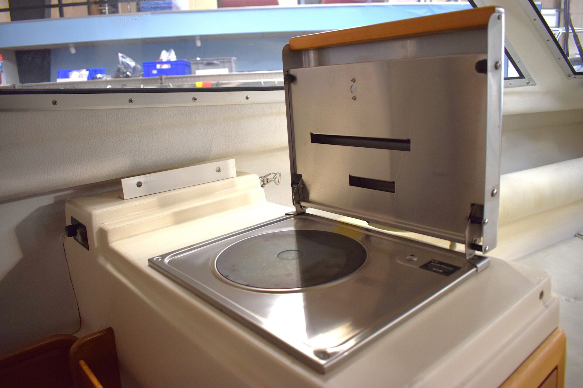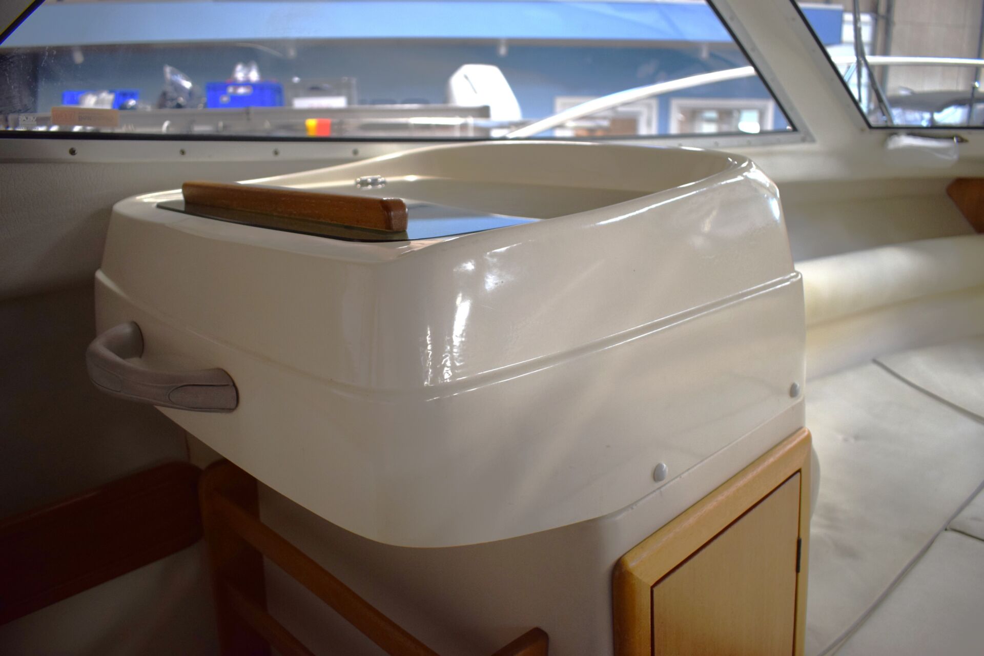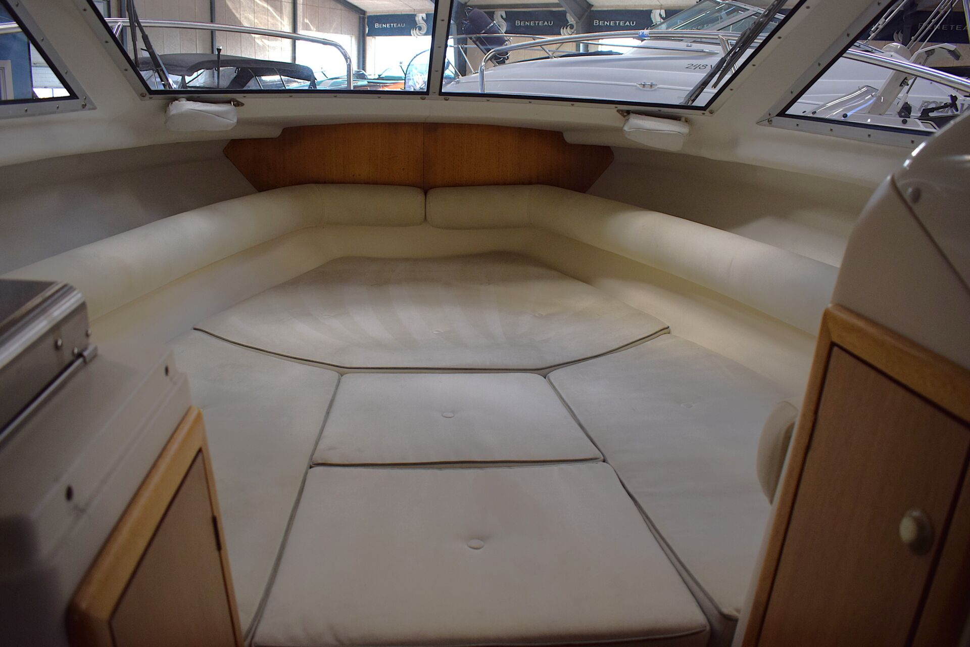 Indretningen er gennemtænkt med et rummeligt cockpit, hvor sofaarrangementet skaber naturligt samlingspunkt for familie og venner. Førersædet er drejeligt, og cockpitbordet gør det let at samle alle om frokosten i havnen eller for svaj. Teakdørken tilfører både elegance og praktisk skridsikkerhed. I kahytten er der mulighed for overnatning for to personer, hvilket forlænger sæsonen og giver friheden til spontane weekendture – her er oven i købet en alletiders Wallas kogeblus – der også kan bruges som lille varmekilde i kabinen. Badeplatformen med integreret stige gør badning og vandsport let og tilgængeligt, og den komplette kaleche giver fleksibilitet i alle vejrforhold. Navigationen klares nemt via Raymarine Dragonfly 7 kortplotter og ekkolod.