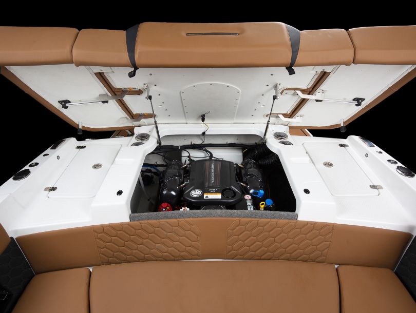 H4 leveres med kraftfulde MerCruiser indenbordsmotorer fra 250 til 350 hk, hvilket giver alt fra stabil cruising til spændende vandsport. Ombord finder du et rummeligt cockpit med bløde hynder, elegante detaljer og kvalitetsmaterialer, der indbyder til afslapning og socialt samvær.