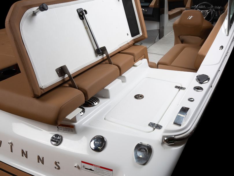 Four Winns H4 er en ægte amerikansk sportsbåd, der kombinerer fart, komfort og luksus i en elegant helhed. Med sit moderne design og stilfulde linjer fremstår H4 som en harmonisk blanding af klassisk og nyt – en båd, der både er funktionel og en fryd for øjet.