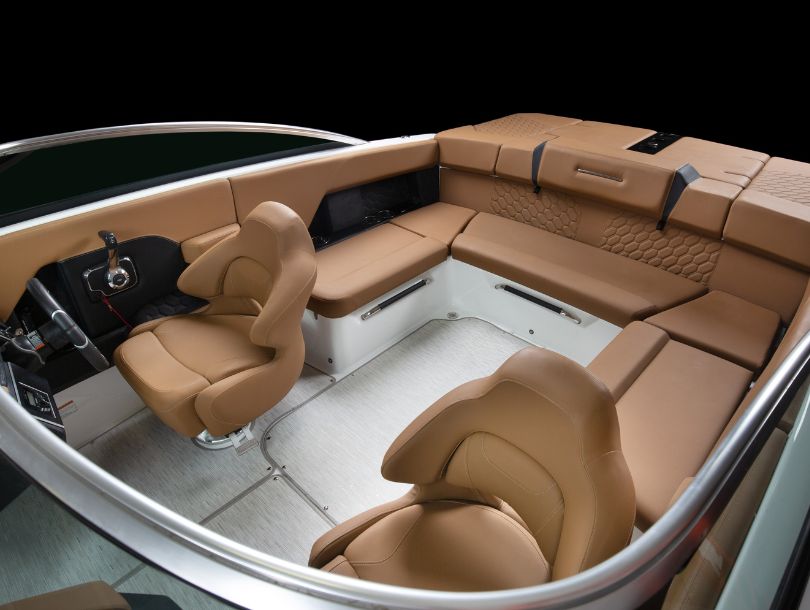 Et af de mest iøjnefaldende træk er det innovative instrumentpanel, der forener avanceret teknologi med nostalgiske detaljer. Plotter, musikanlæg og moderne funktioner præsenteres i et design inspireret af klassiske motorbåde, med kromdetaljer og tidløst finish.