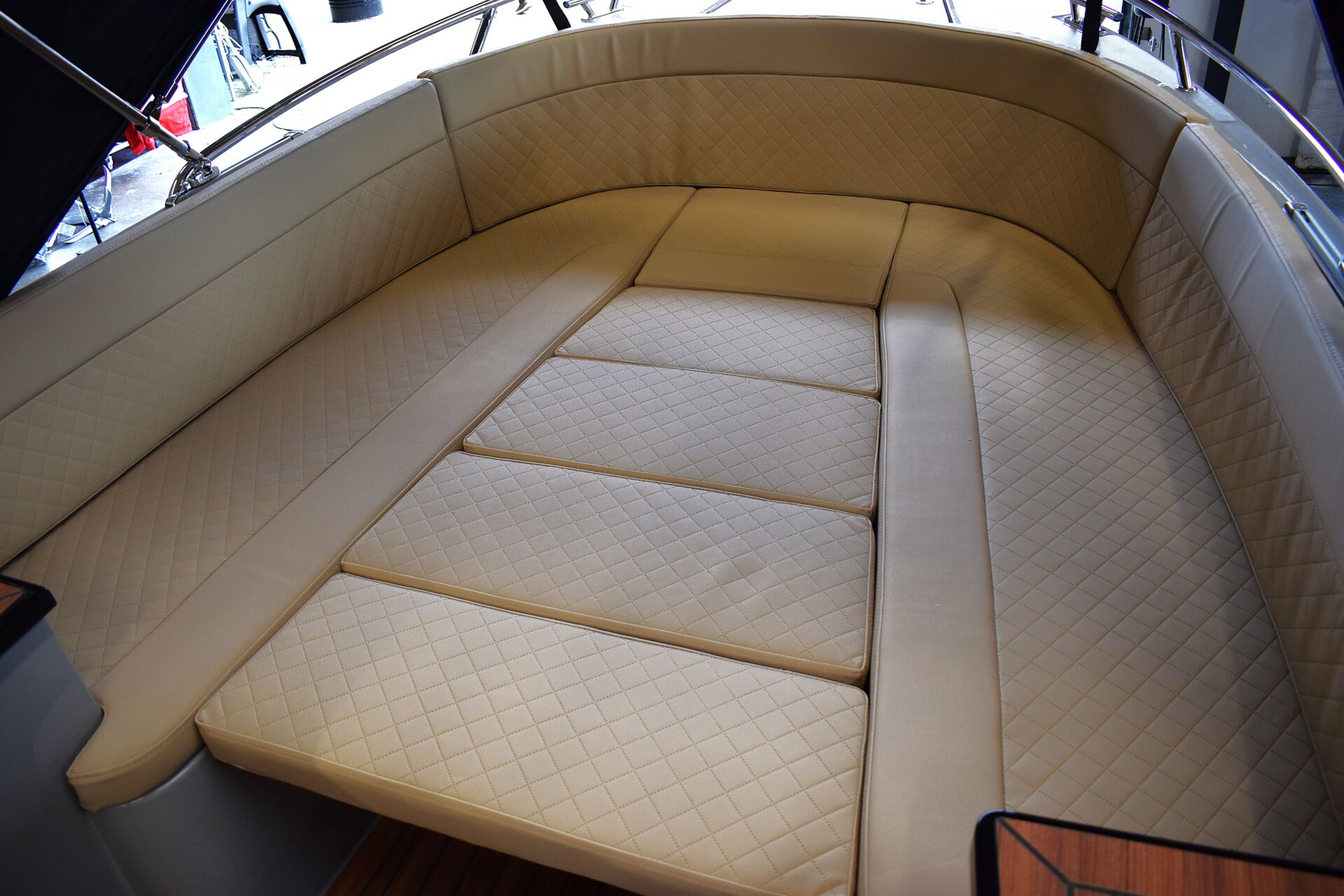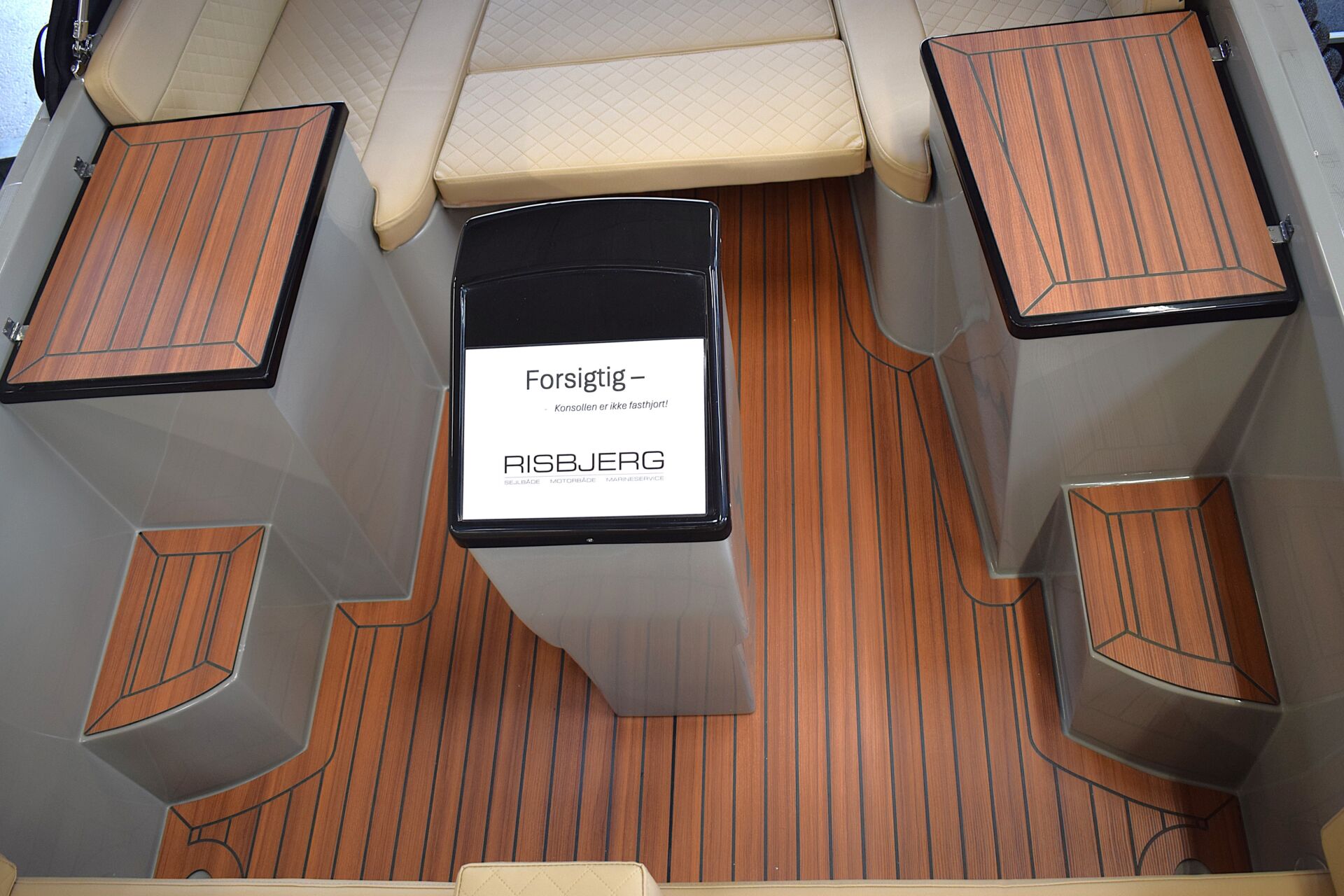 Ombord finder du en rummelig og indbydende indretning med plads til 6–8 personer, hvilket gør båden ideel til både familie og gode venner