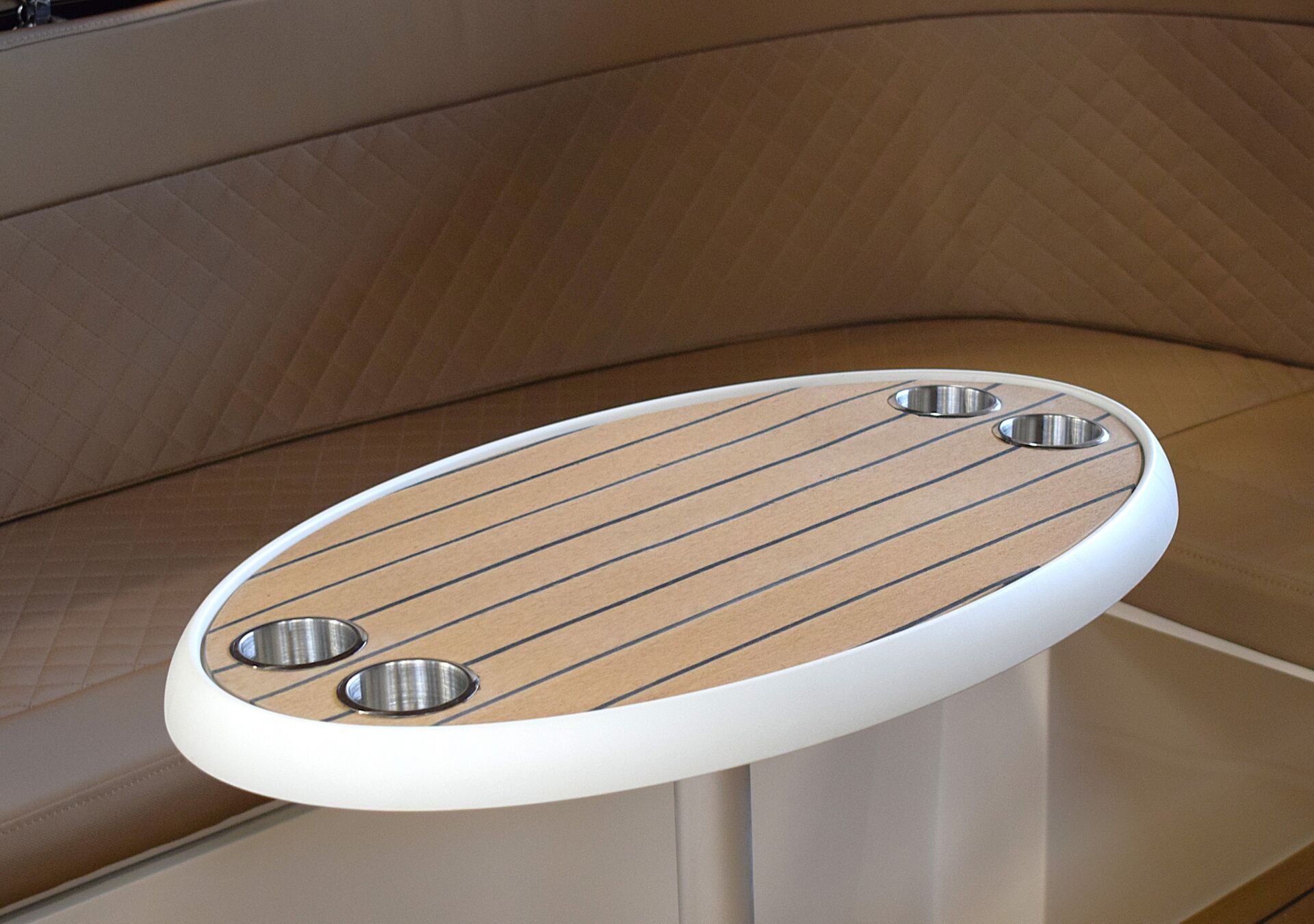 Motoren er elegant skjult, hvilket giver et roligt og stilrent udtryk samt en mere støjsvag sejlads