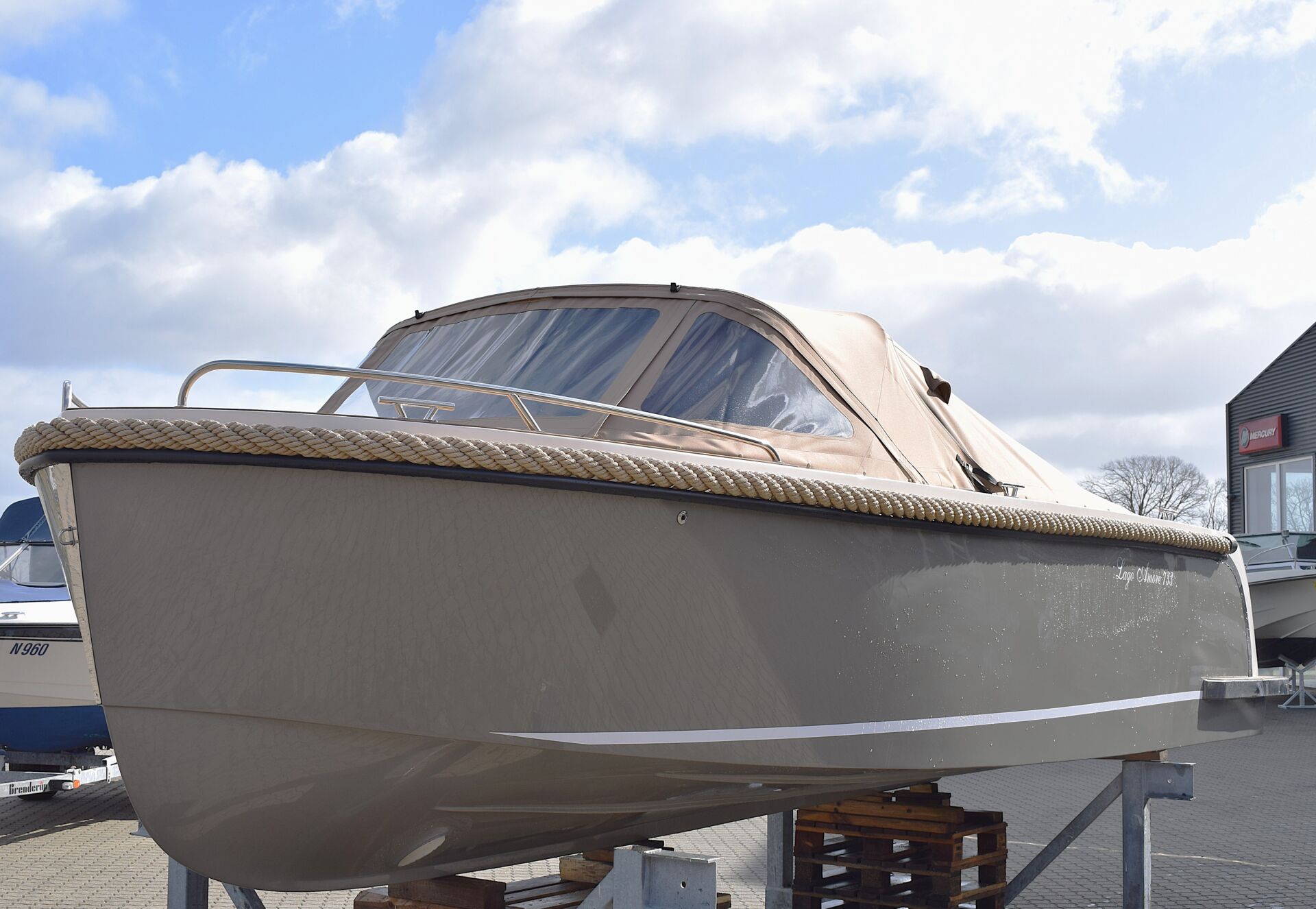 Denne båd monteres op med en velkørende Mercury F50, men der er mulighed for motorisering helt op til 150 hk – så får du en båd, der både kan glide stille gennem vandet eller bringe dig hurtigt frem, når destinationen kalder.