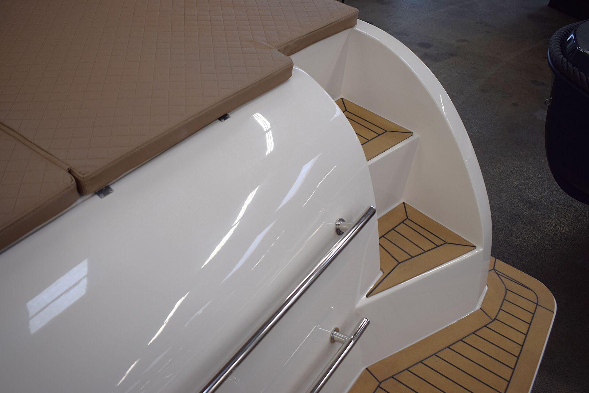 Alt er gennemtænkt. Fra de elegante detaljer i rustfrit stål til materialevalget i dæk og cockpit, hvor kvalitet og finish går hånd i hånd.