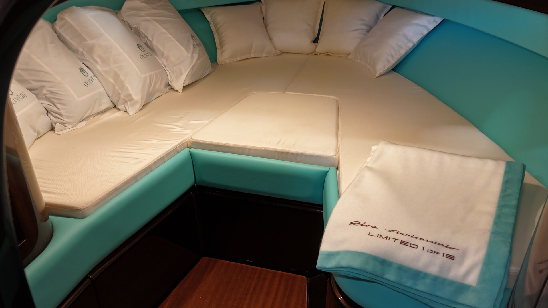 Riva Anniversario, nr. 7 ud af blot 18 byggede – en helt enestående motoryacht, der forener ikonisk design, luksus og kompromisløs performance. Med en samlet længde på 10 meter er båden opbygget i højkvalitets glasfiber, hvilket sikrer både holdbarhed og en “one of a kind”-elegance på vandet.