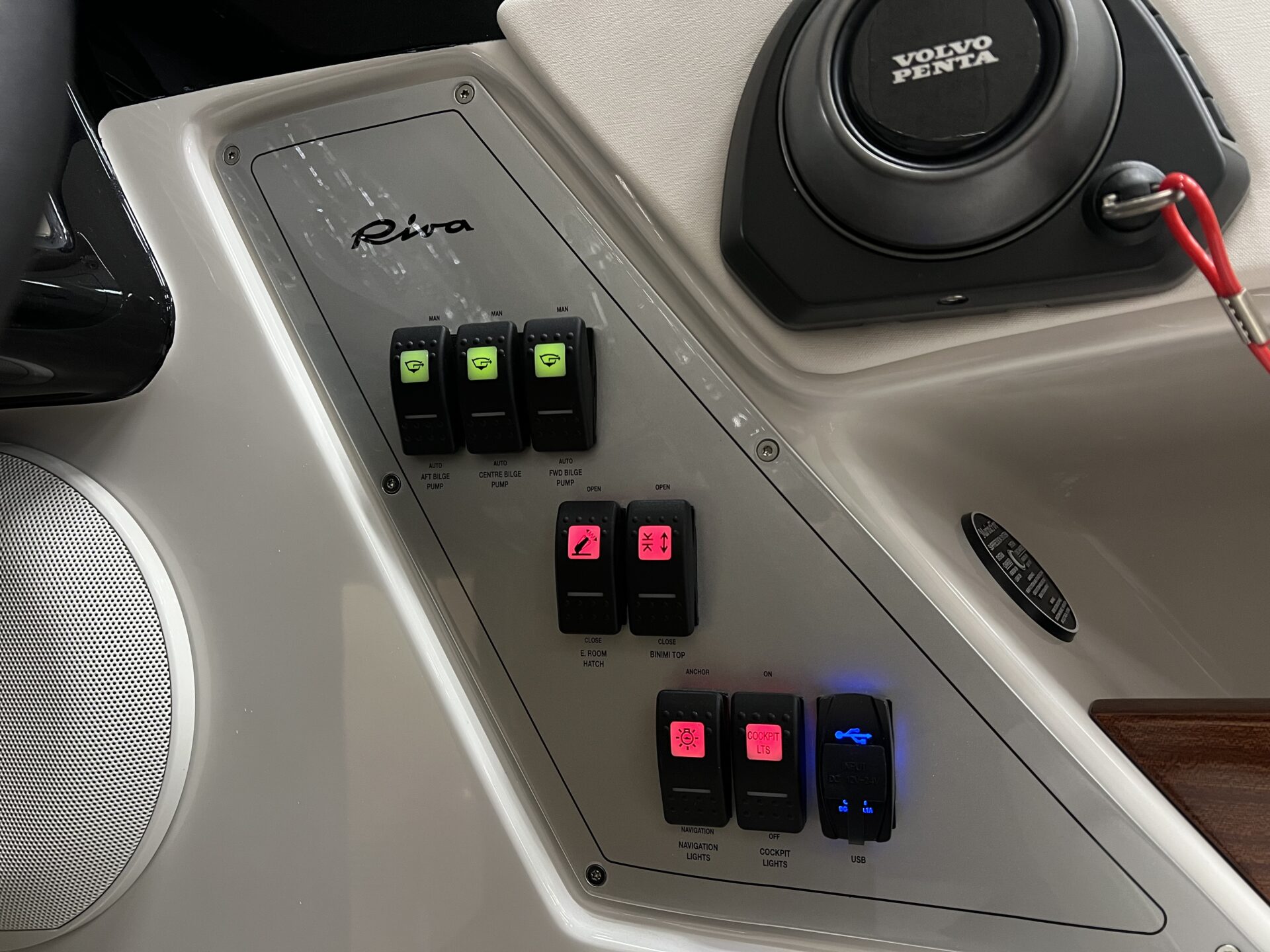 Riva Iseo 27 har desuden praktiske opbevaringsmuligheder til udstyr og personlig ejendom. Det gør det nemt at holde båden organiseret og ryddelig. De luksuriøse materialer og finish giver et eksklusivt udtryk, der skiller sig ud på vandet.